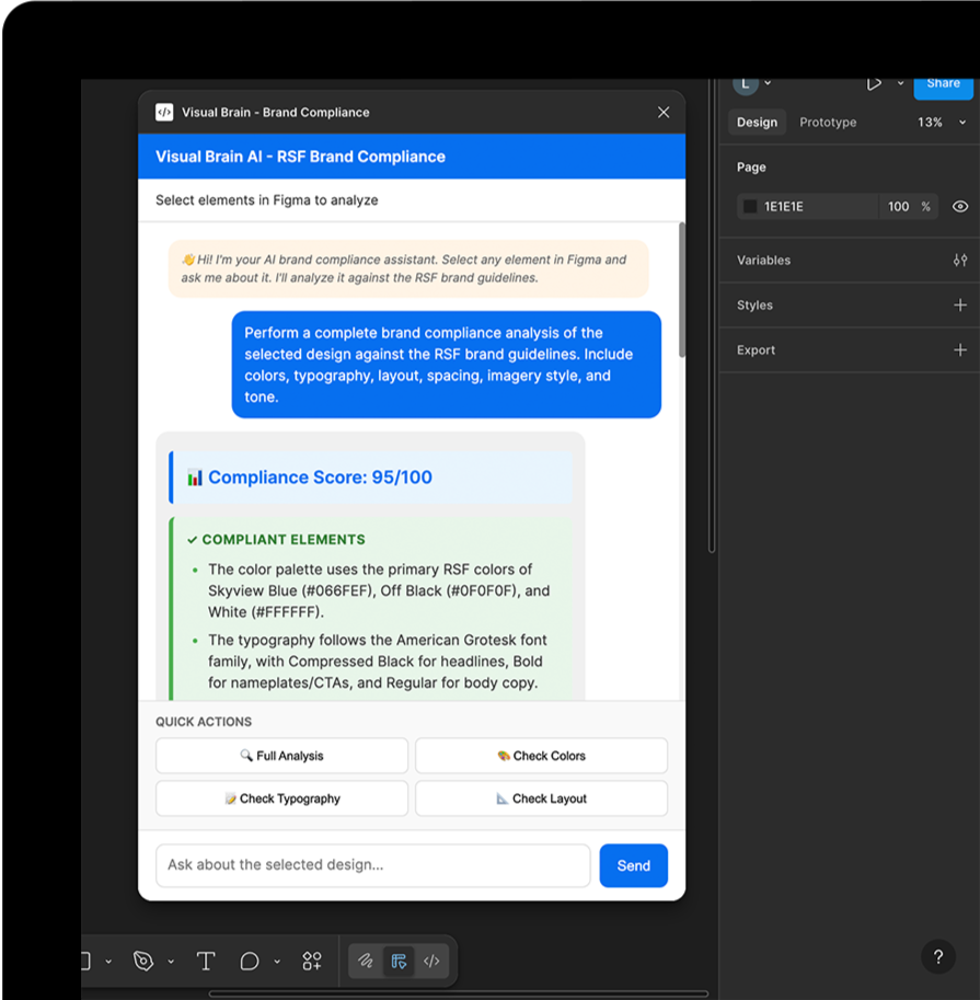 A Figma-based AI design copilot that understands a brand’s visual language and provides real-time feedback as designers work. Instead of enforcing rules, it teaches patterns, helping teams scale brand identity with clarity, creativity, and speed.