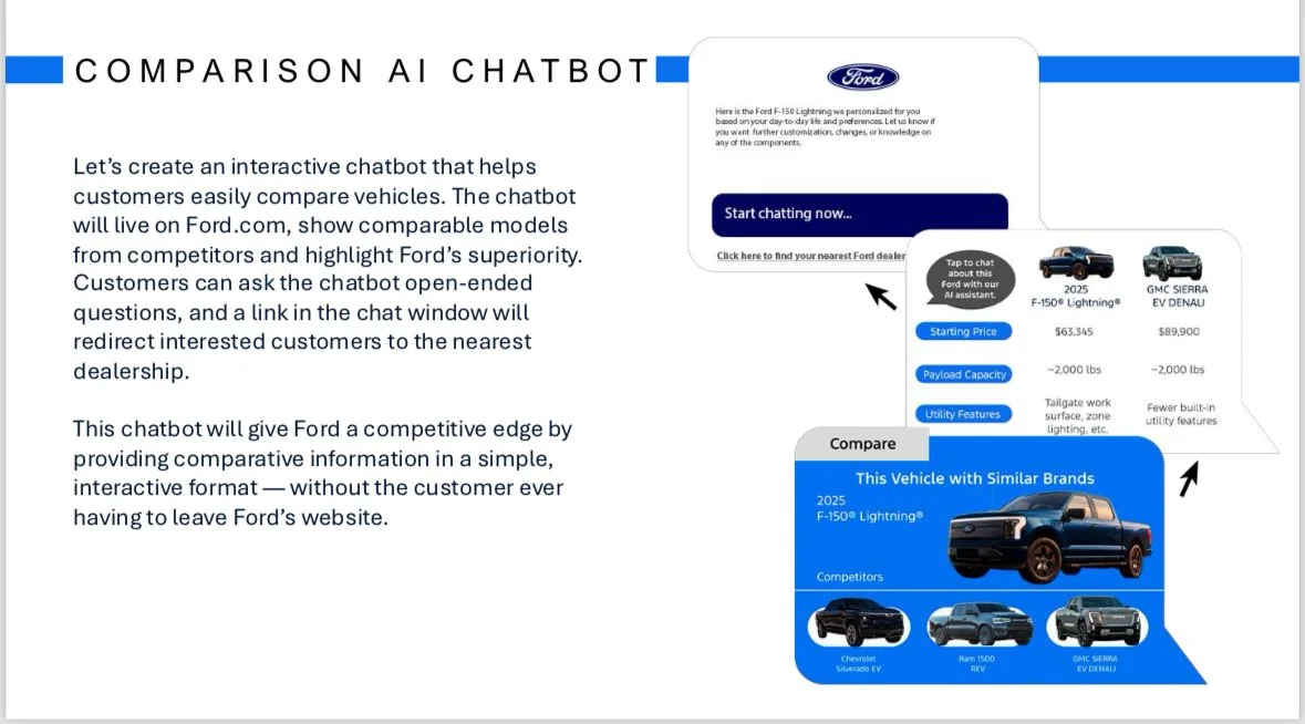 Ford asked for a more competitive way to show consumers how they have a competitive advantage against other automobile companies.