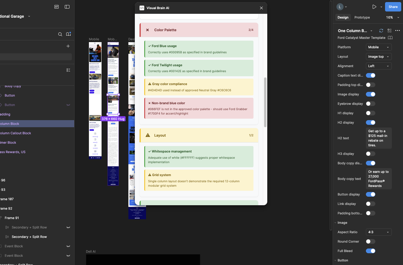 One-click compliance checks for colors, typography, spacing, and layout