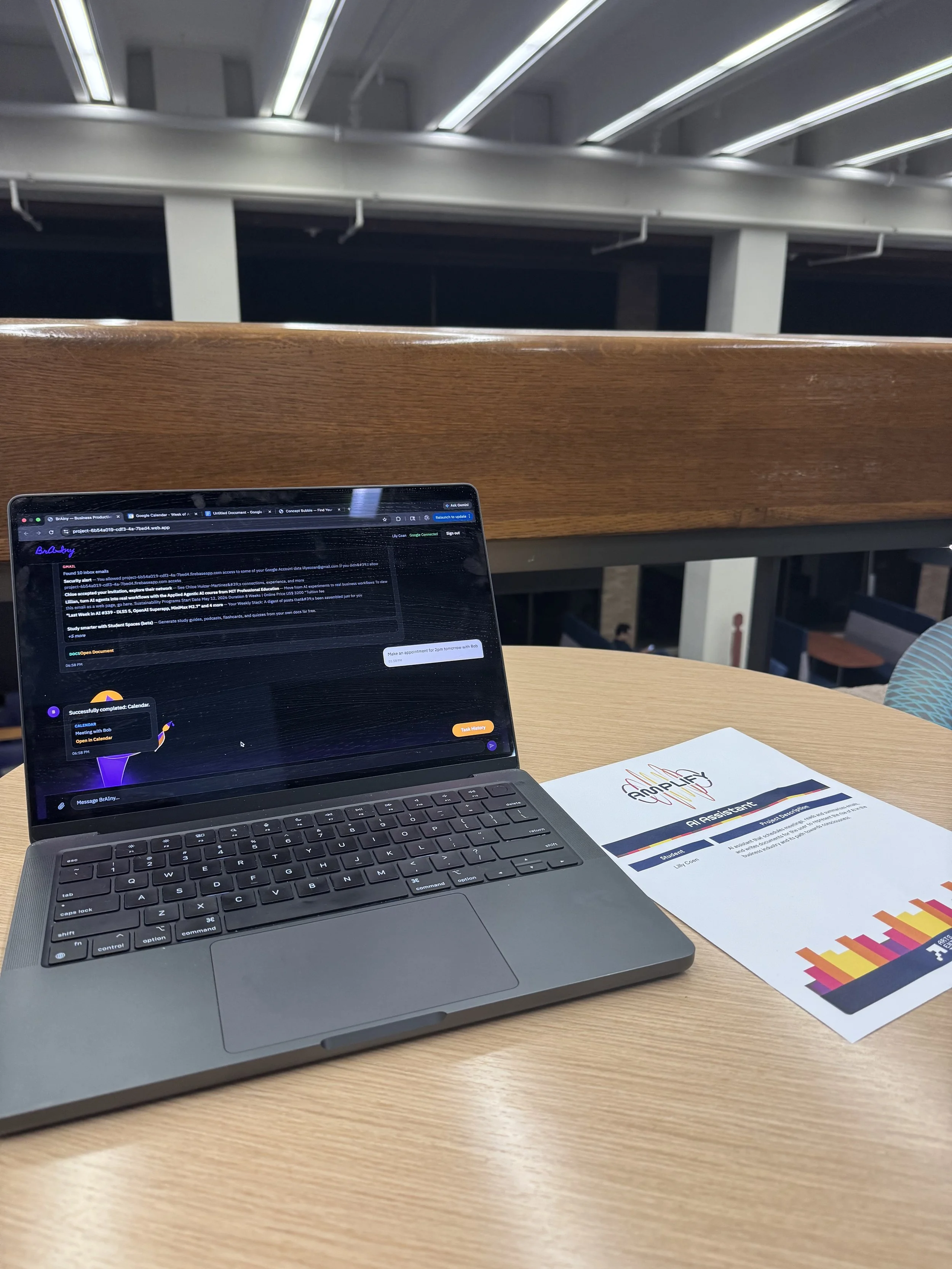 BrAIny is currently in active user testing, with early demo sessions suggesting significant reductions in time spent on routine Workspace tasks, estimated 85–90% faster scheduling and email triage compared to manual workflows. The next phase focuses on scaling the app for full deployment: hardening the Google OAuth flow for multi-user production, stress-testing Firestore session persistence across concurrent users, and refining Gemini's contextual reasoning on real, varied conversation patterns gathered from testers. The goal is a deployable, user-ready product that functions as a persistent AI layer on top of Google Workspace, one that learns user preferences over time and handles the administrative overhead that interrupts deep work.