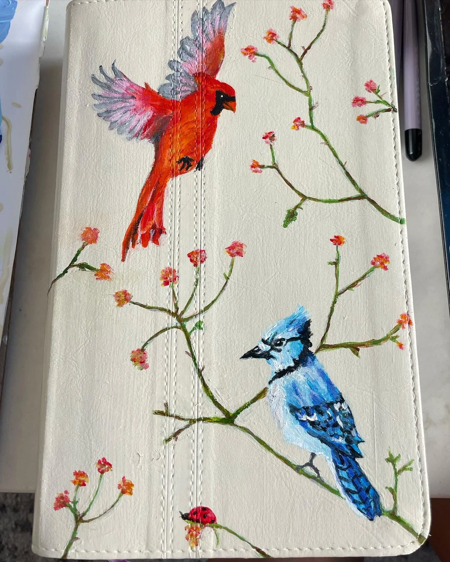 Acrylic painting on leather book cover