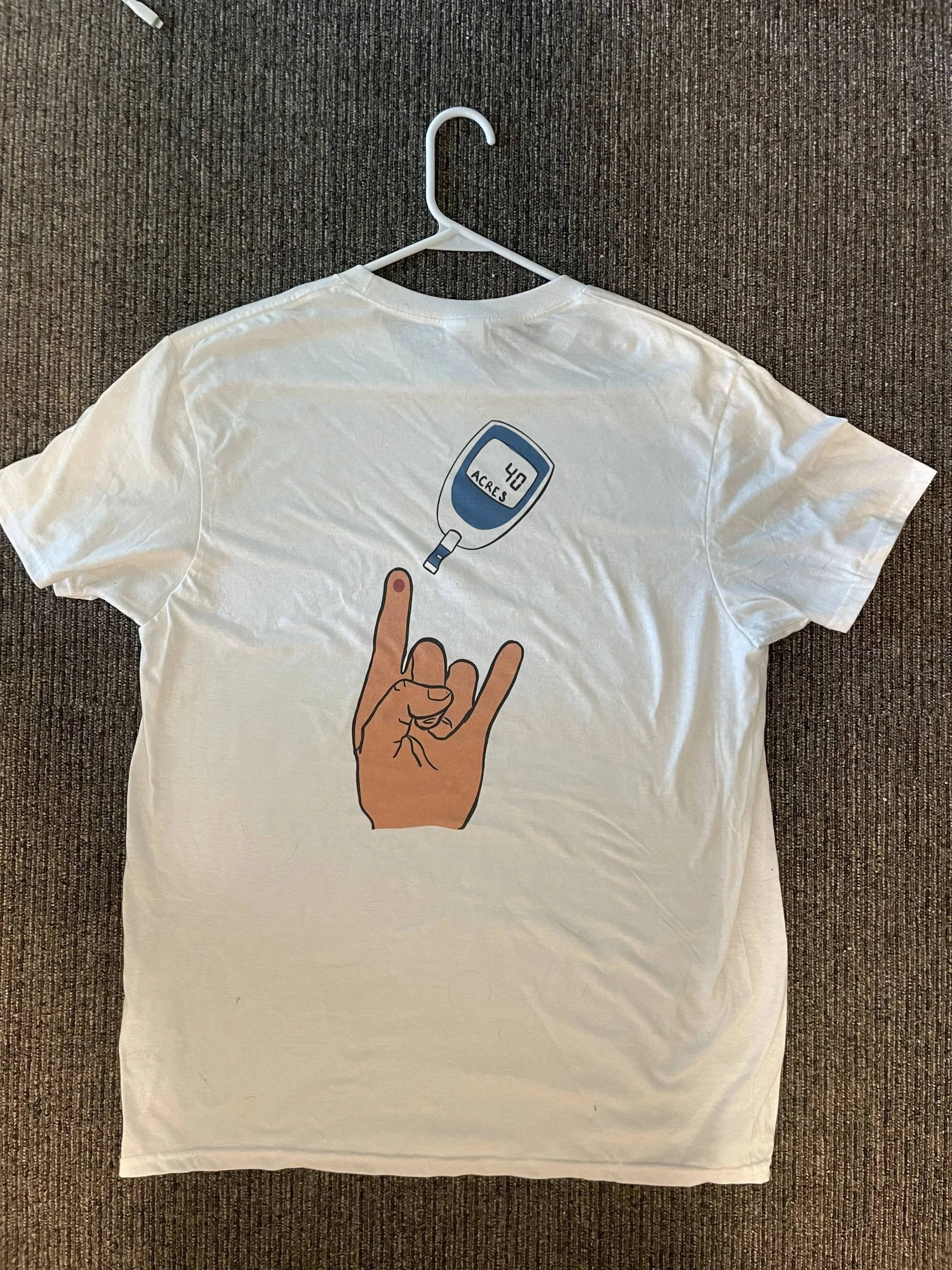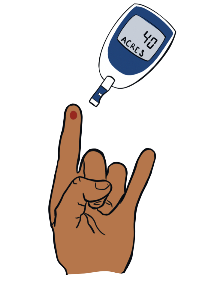 We needed a logo that could combine the spirit of both Type One Diabetics and the University of Texas at Austin. Therefore, the Hook ‘Em hand sign has a pricked finger with a glucose monitor that reads '“40 ACRES",” the known acreage of the university.